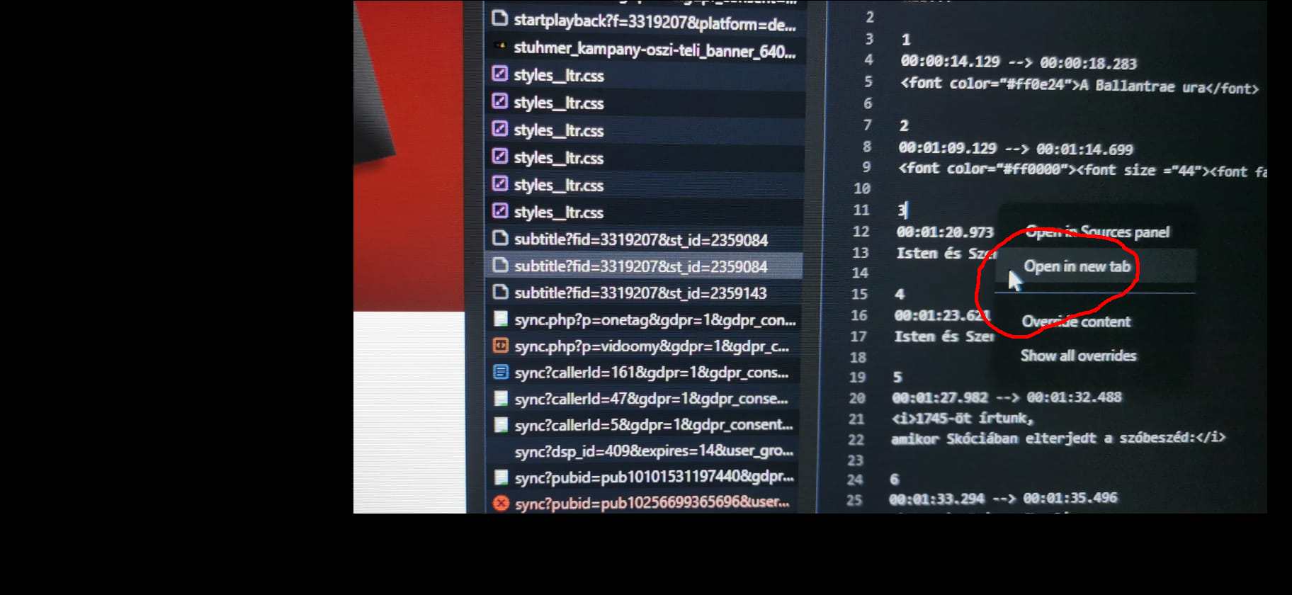 Keresd meg a (subtitle?fid=) és kattints rá.