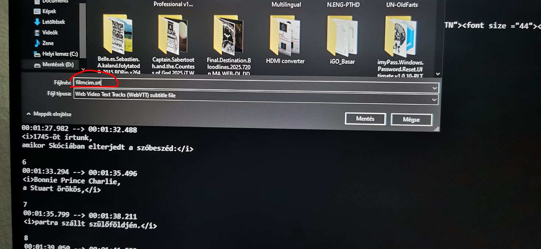 Ird ide: (filmcím.srt) és (Mentés)